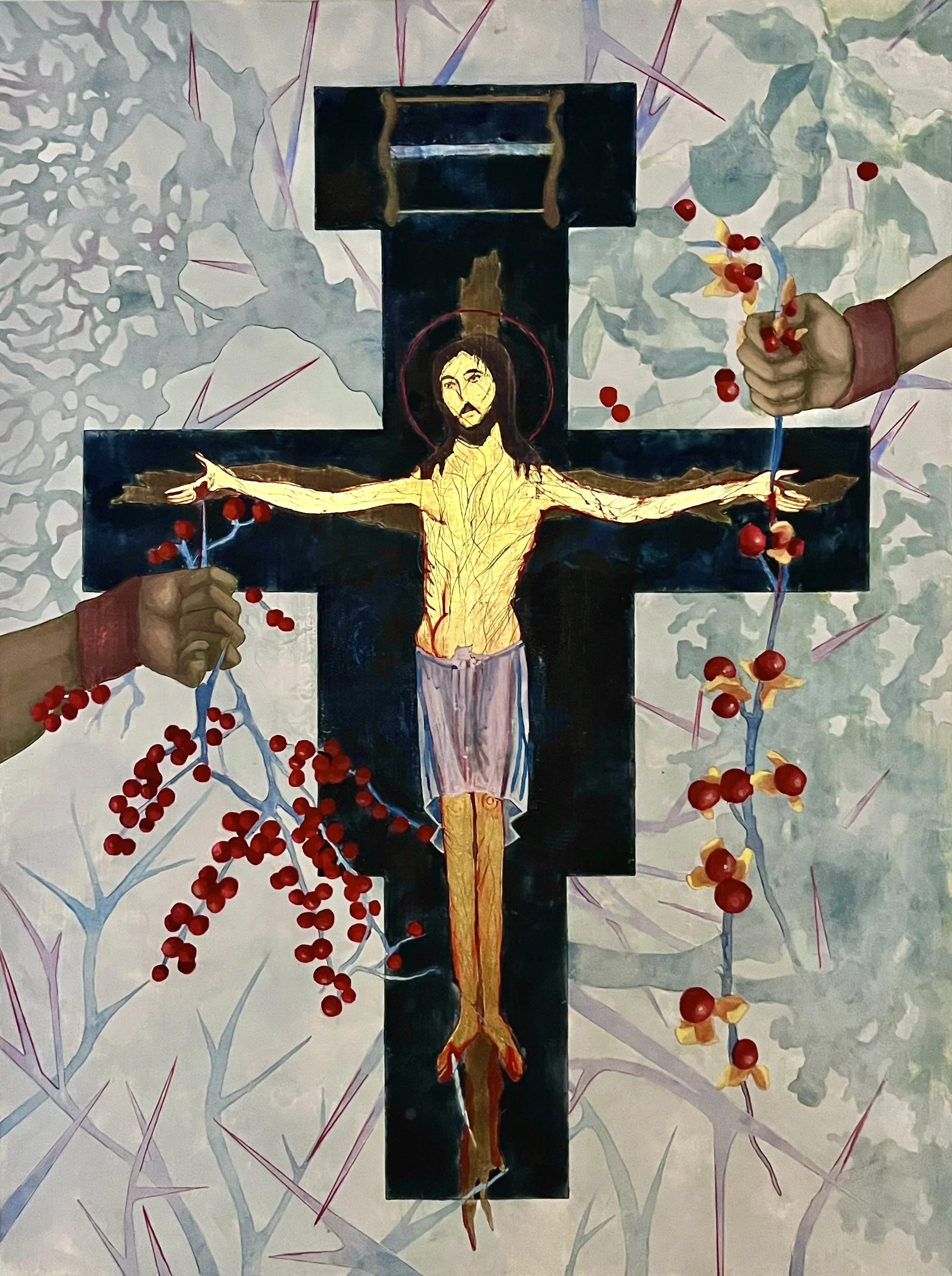 Jesus in Gethsemane 10"x10" Egg Tempera and Gold Leaf on Board SOLD.